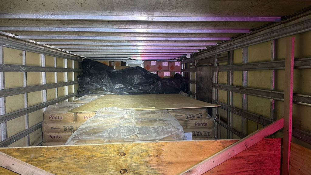 A carreta foi abandonada próximo à Rua Massacá e localizada posteriormente pelos policiais, com a carga ainda no contêiner.